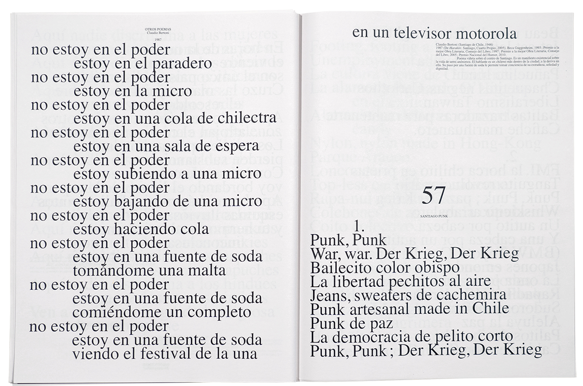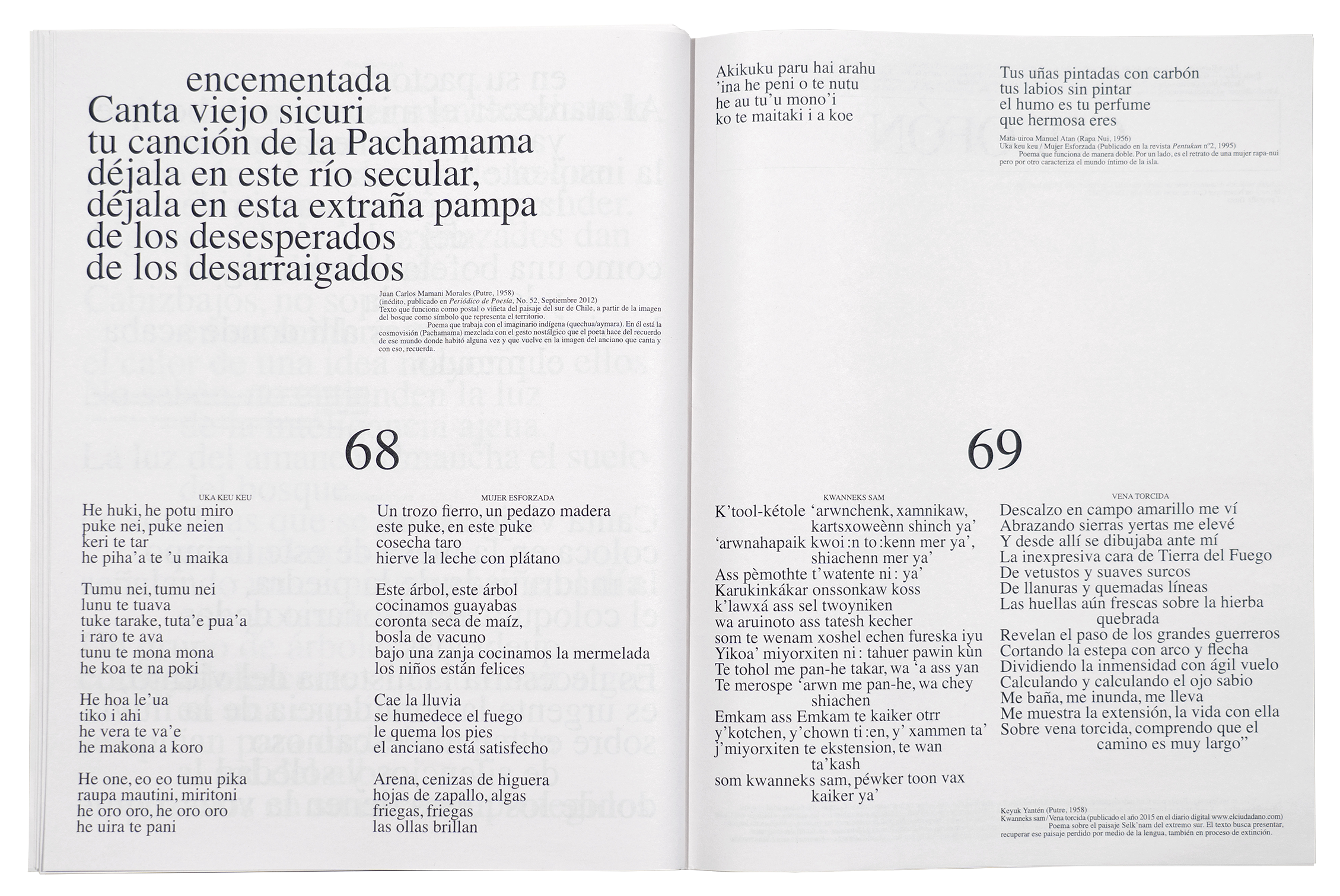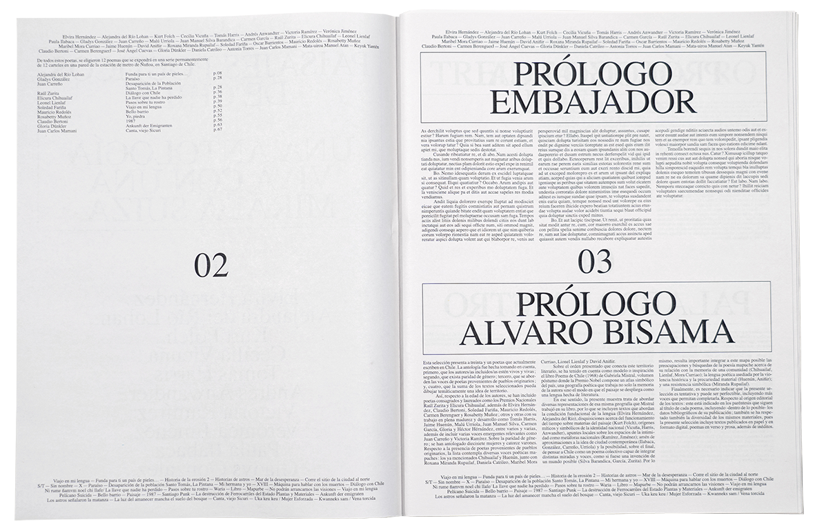 Collection of Chilean poems by contemporary authors. Two different types of format, Tabloid newspaper and pocket format with detachable pages, which can be given as gifts. Work done at écal for the Swiss Embassy in Chile.