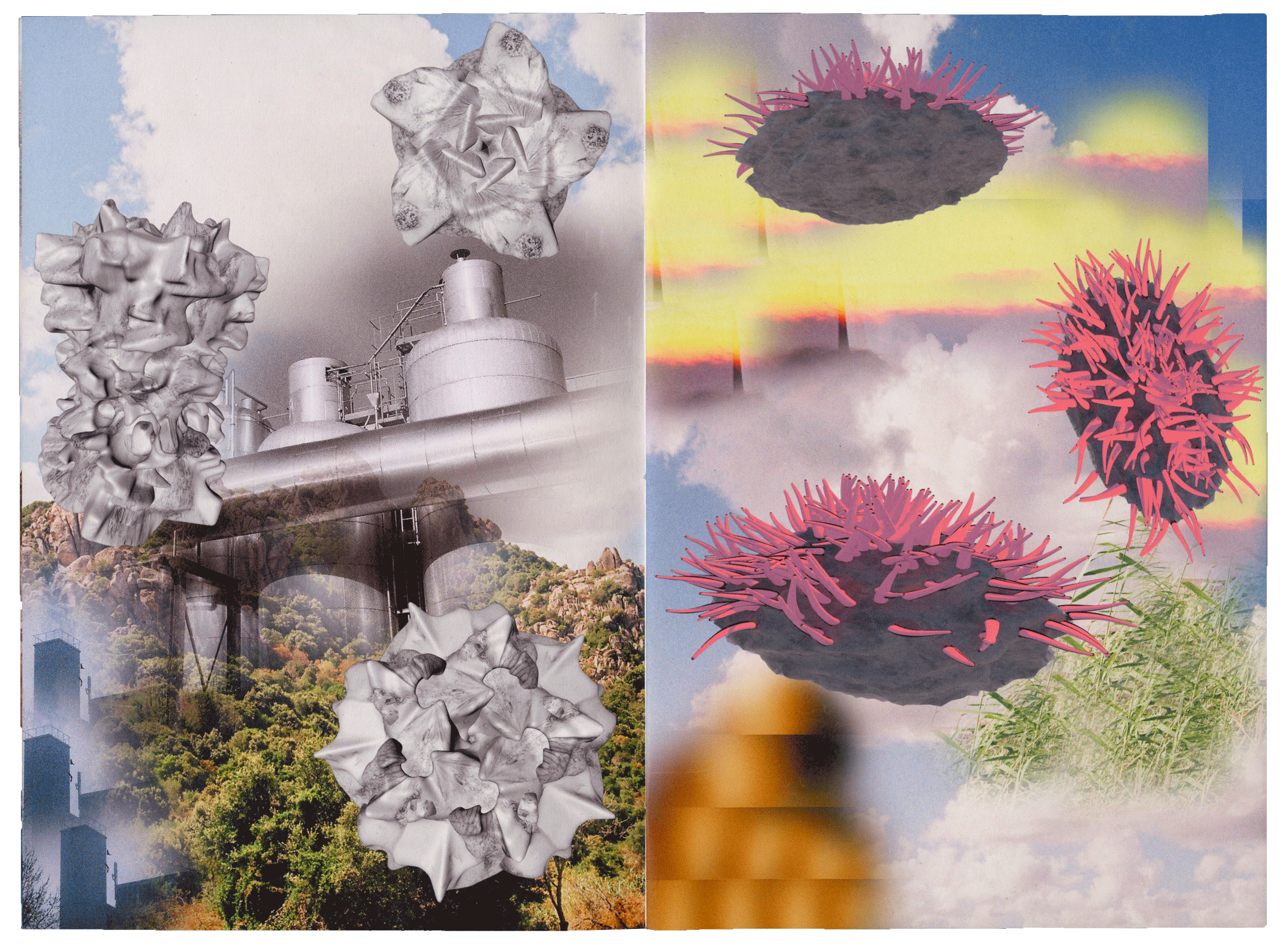 Arcadia is a utopian project in which I created four types of plant that could solve the environmental problems caused by mankind. For this project I wanted to mix different techniques: 3D for the creation of the plants and digital collage from photos taken on film.