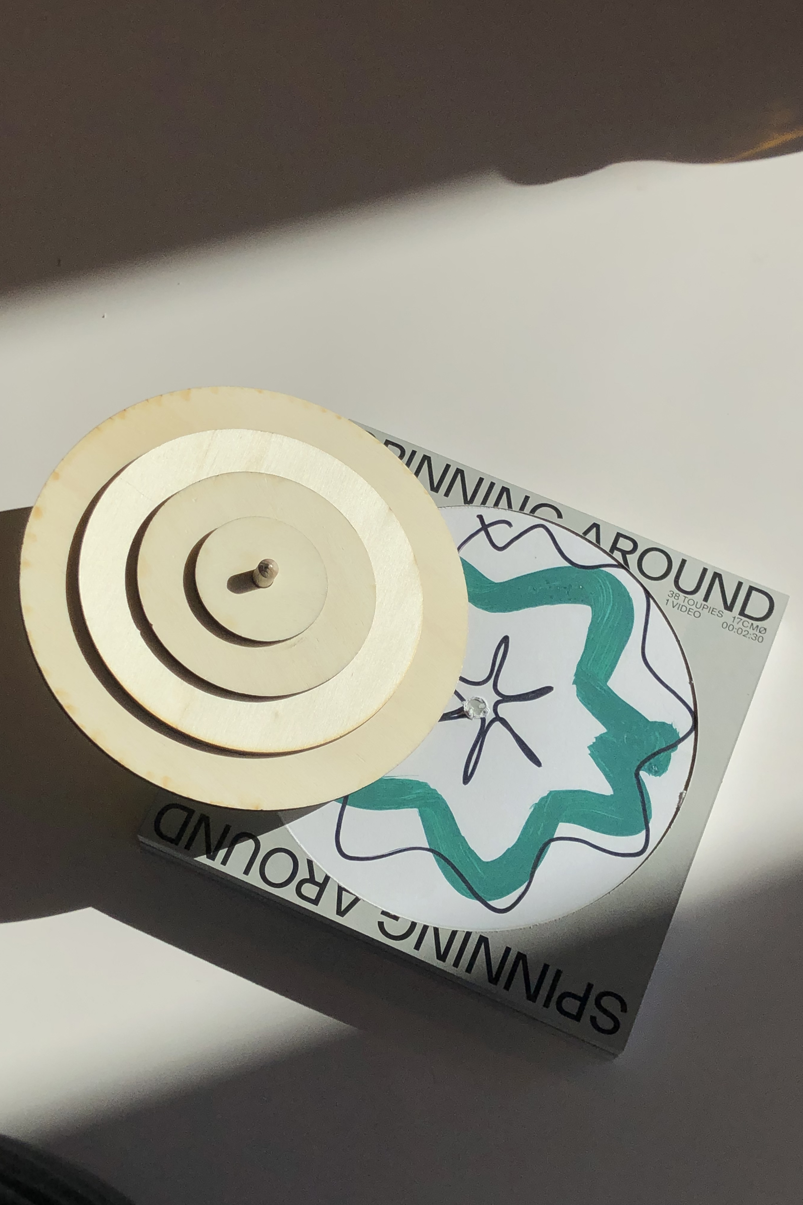 Research into visual experimentation and the creation of images through circular movements and static forms. The result is both a book containing a series of circles created on a ceramic wheel, and a video showing the various circles in motion on wooden spinning tops.